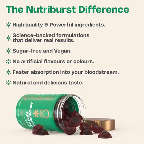 Nutriburst 300mg Ashwagandha + Vitamin B5 & Iodine Multipack - Herbal Adaptogen to Reduce Tiredness & Support Mental Performance - Vegan & Sugar Free - 3 x 60 Tropical Gummies - 3 Month Supply