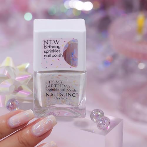 Nails Inc It’s My Birthday, Multicolor, Rainbow Sprinkles, Scented, Glossy, No Chip, Long Lasting, Quick Dry, Air Dry, Professional Manicures & Pedicures, Fingernail & Toenail, Nail Polish, 14 ML