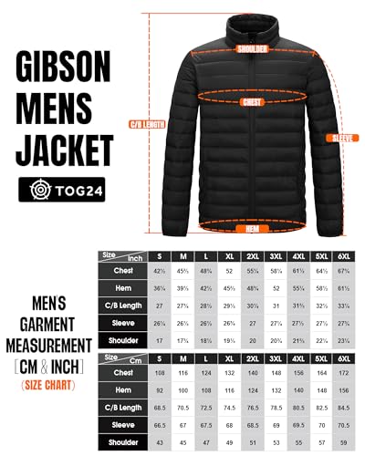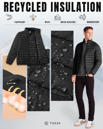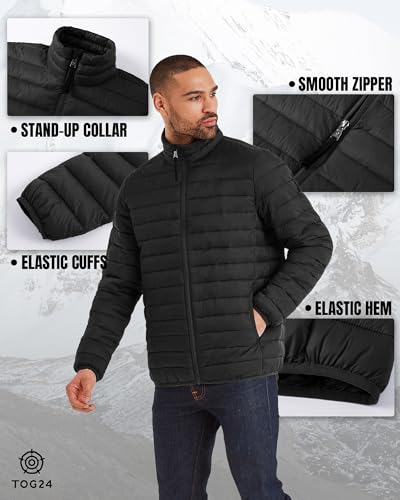 TOG24 Gibson Mens Puffer jacket Lightweight Padded Jacket Waterproof Quilted Coat Ultra Warm Wind Resistant for Hiking Casual Skiing Black 3XL
