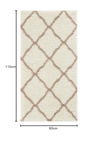 THE RUGS Shaggy Rug – Modern Moroccan Design Rugs for Living Room, Bedroom, Hallway, 3 cm Thick Area Rugs, (Moroccan Ivory/Beige, 60x110cm)