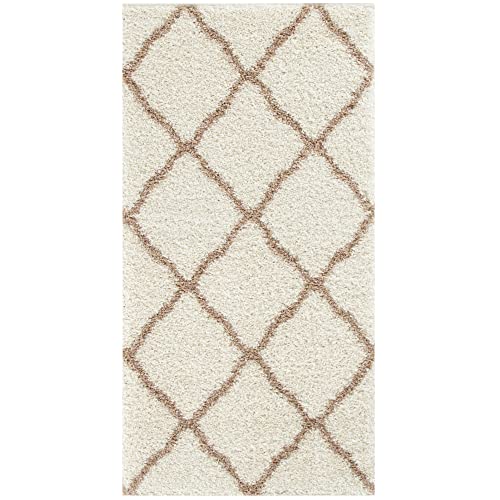 THE RUGS Soft Moroccan Shaggy Rugs & Runners Ivory & Beige Living Room Size: 60cm x 110cm - Beige - Size: 60cm x 110cm