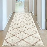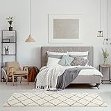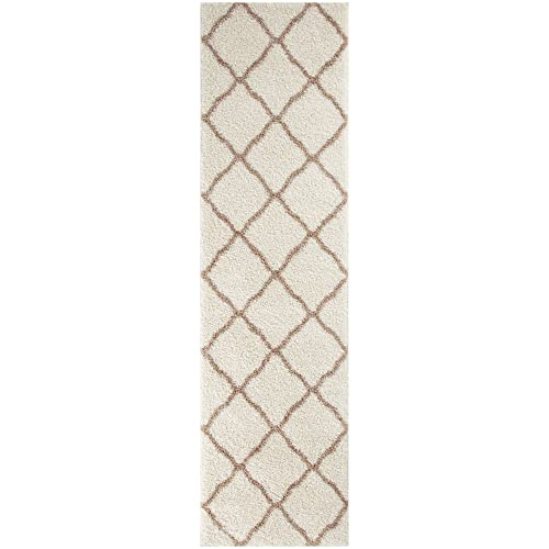 THE RUGS Shaggy Rug – Modern Moroccan Design Rugs for Living Room, Bedroom, Hallway, 3 cm Thick Area Rugs, (Moroccan Ivory/Beige, 80x300cm)
