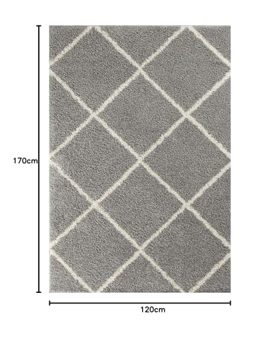 THE RUGS Shaggy Rug – Modern Moroccan Design Rugs for Living Room, Bedroom, Hallway, 3 cm Thick Area Rugs, (Diamond Grey/Ivory, 120x170cm)