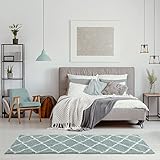 THE RUGS Shaggy Rug – Modern Moroccan Design Rugs for Living Room, Bedroom, Hallway, 3 cm Thick Area Rugs, (Moroccan Duck egg blue/Ivory, 80x300cm)