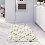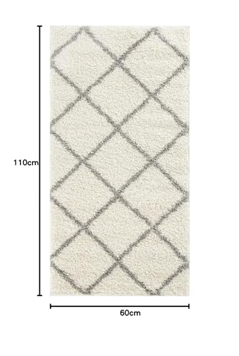THE RUGS Shaggy Rug – Modern Moroccan Design Rugs for Living Room, Bedroom, Hallway, 3 cm Thick Area Rugs, (Diamond Ivory/Grey, 60x110cm)