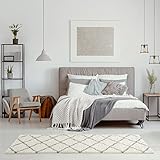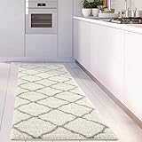 THE RUGS Shaggy Rug – Modern Moroccan Design Rugs for Living Room, Bedroom, Hallway, 3 cm Thick Area Rugs, (Moroccan Ivory/Grey, 80x300cm)