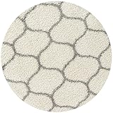 THE RUGS Soft Trellis Shaggy Rugs & Runners Ivory & Grey Living Room Size: 120cm diameter - Ivory - Size: 120cm diameter