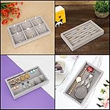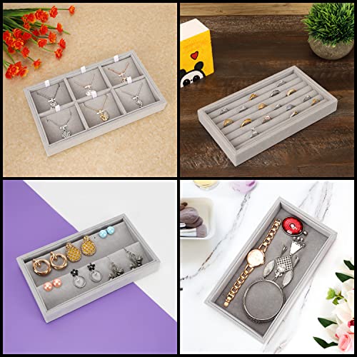 BELLE VOUS 6 Pack of Grey Velvet Stackable Jewellery Organiser Storage Trays