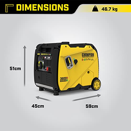 Champion Power Equipment 3600 Watt Dual Fuel Digital Hybrid Inverter - 224cc Engine, 18 hour run time, Ultra-quiet & light, Clean Power hybrid generator, economy mode to save fuel & surge protection