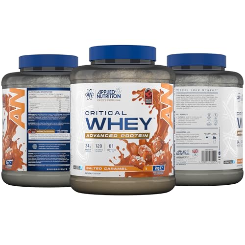 Applied Nutrition Critical Whey Protein Powder – 24g Protein per Serving, High Protein Powder, Protein Shake with BCAAs & Glutamine – Muscle Growth & Recovery (2Kg - 61 Servings) (Salted Caramel)