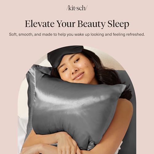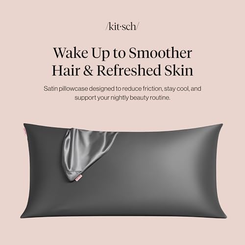 Kitsch Satin Pillowcase with Zipper for Hair & Skin, Softer Than Silk Pillow Cases King, Smooth Pillow Covers, Machine Washable, Wrinkle-Free, Cooling Satin Pillow Case King size 19"x36", Charcoal