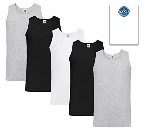 Fruit of the Loom Lightweight Vest Men's (Pack of 5), 2 x Grey 2 x Black 1 x White + 1 Hl-kauf Notepad, XL