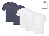 Fruit of the Loom Men's T-Shirt, 3 x White + 2 x Navy Blue Vintage + 1 x Hl Purchase Block, M
