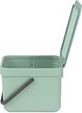Brabantia Sort & Go Food Waste Bin 6L (Jade Green), Space-Efficient Plastic Recycle Bin with Handle, Removable and Stay-Open Lid, Easy to Clean Kitchen Compost Caddy without Nooks and Rims