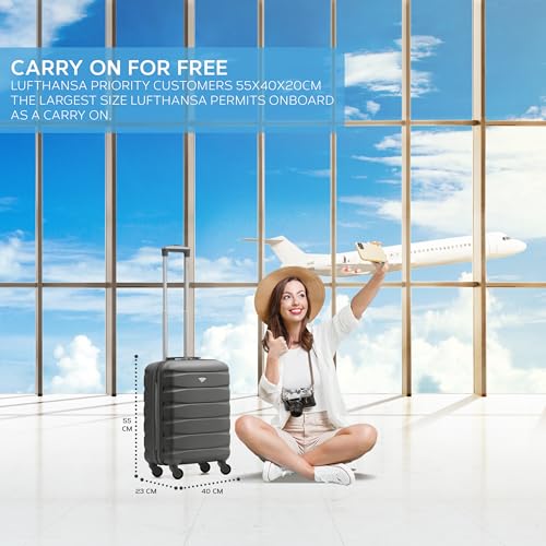 Flight Knight 55 x 40 x 23 cm Cabin Bag, Suitcase for Lufthansa & Over 30 Airlines Including British Airways, EasyJet Travle Bag- Lightweight Durable 4 Wheel Carry On Suitcase, Hard Shell- 55x40x23