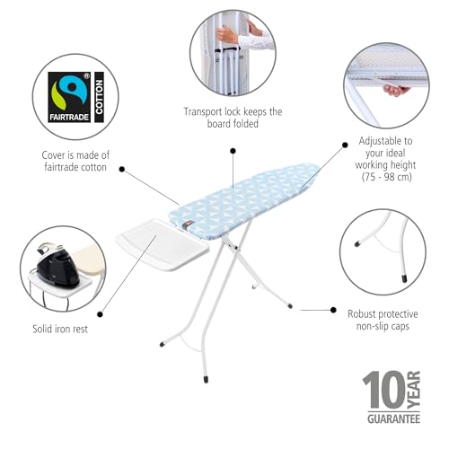 Brabantia - Ironing Board B - with XL Steam Unit Holder - Medium & Foldable - Adjustable Height - Non-Slip Rubber Feet Cotton Cover - Child & Transport Lock - Fresh Breeze - 124 x 38 cm