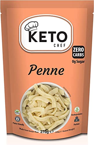 Keto Chef Vegan Penne Pasta - Konjac Instant Slim Pasta, Shirataki, Contains Zero Carbs & Sugar, Paleo Friendly Healthy Diet Food, Ready to Eat | Pack of 12 (270g)