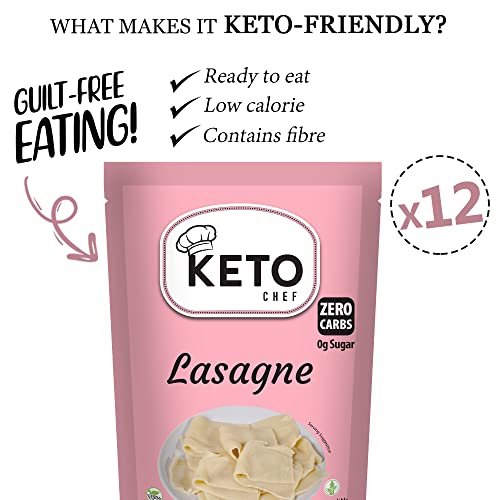 Keto Chef Vegan Lasagne Pasta Sheets - Konjac Instant Slim Pasta Sheet, Contains Zero Carbohydrates, Shirataki, Made from Free-From Flour, Paleo Friendly, Low Calorie Ready to Eat | Pack of 12 (270g)