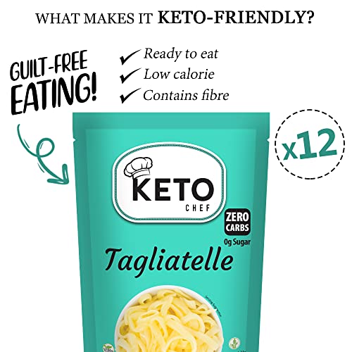 Keto Chef Free-From Konjac Tagliatelle - Vegan & Sugar Free, Shirataki, Made of Konjac Flour Having Zero Carbohydrate & Oat Fiber, Low Carb Instant Tagliatelle Pasta, Ready to Eat | Pack of 12(270g)