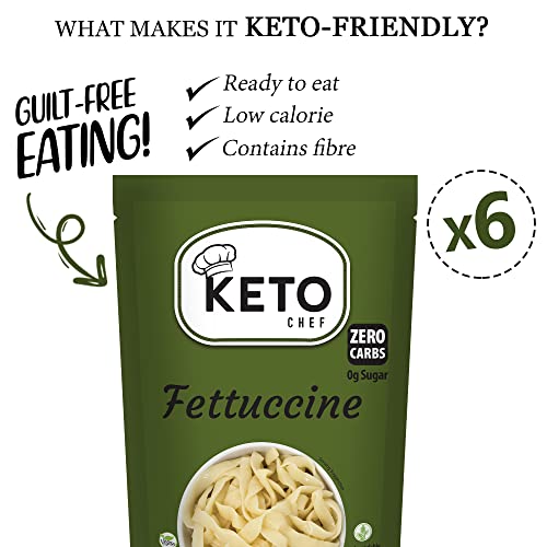 Keto Chef Konjac Fettuccine Pasta (Pack of 6, 270g) - Sugar & Free-from, Made with Konjac Flour, Contains Zero Fat, Shirataki, Low Calorie Healthy Diet Food | Ready to Eat