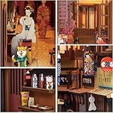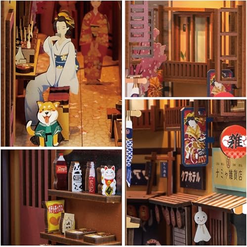 Tonecheer DIY Book Nook Kit for Adults,3D Wooden Puzzle Bookend Bookshelf Insert Decor, Booknook Miniature House Kit with LED Light for Christmas Birthday (The Japanese Grocery Store)