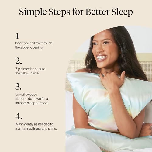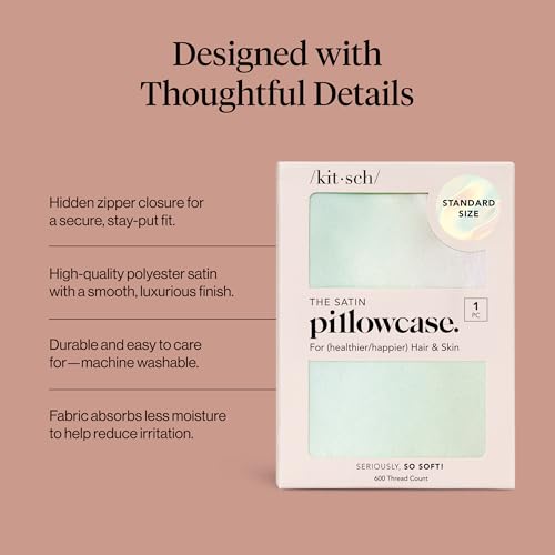 Kitsch Satin Pillowcase with Zipper for Hair & Skin, Softer Than Silk Pillow Cases Queen, Smooth Pillow Covers, Machine Washable, Wrinkle-Free, Cooling Satin Pillow Case Standard size 19"x26", Aura