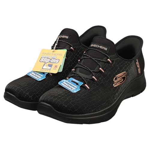 Skechers Women's Summits Classy Night Slip-On Sneakers, Black Mesh/Black/Rose Gold Trim, 4.5 UK