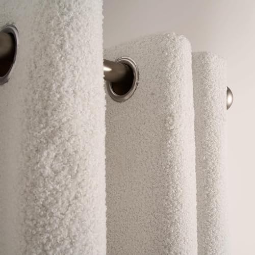 OHS Blackout Cream Curtains for Living Room, Bedroom - Boucle Blackout Decorative Winter Thermal Curtains - Super Soft Modern Insulated - 46x72”