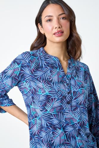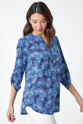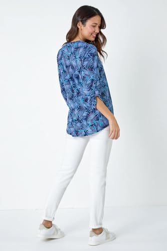 Roman Womens Leaf Print Stretch Jersey Blouse - Blue - Size 12 Uk