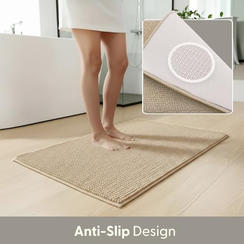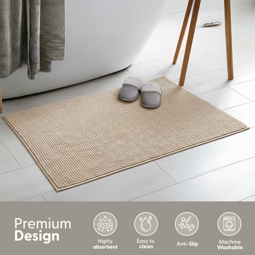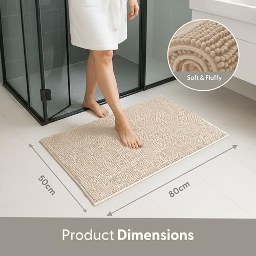 Keplin Non-Slip Microfibre Bath & Toilet Mat, Soft & Comfortable, 50x80cm in Beige Size: 50 cm x 80 cm Beige 50 cm x 80 cm
