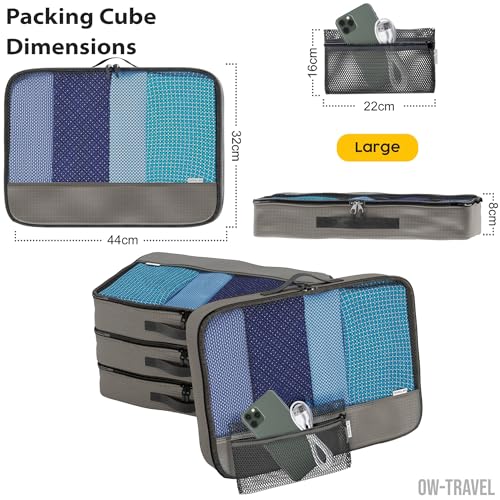 OW-Travel Packing Cubes for Suitcases (5Pcs Grey) 4 Large Suitcase Organiser Bags and Zipper Organiser for Travel Accessories. Luggage Organisers Packing Bags for Suitcases and Backpacks