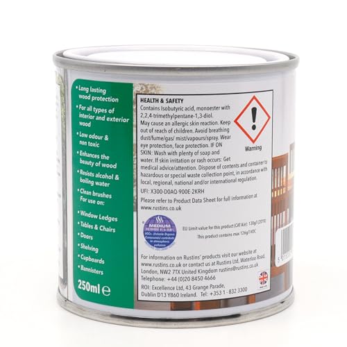 Rustins Quick Dry Poly Varnish Matt Clear 250ml -Tough, Water-Based Clear Finish in Gloss, Matt or Satin; Durable Protection for Interior Wood, Furniture and Floors