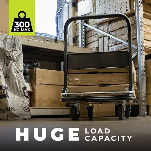 Heavy-Duty Alloy Steel Platform Trolley | Non-Slip Rubber Pad, Foldable Ergonomic Handle | 300kg Load Capacity | Manoeuvrable, Puncture-Proof Wheels | Durable Cart for Warehouse, Industrial Use
