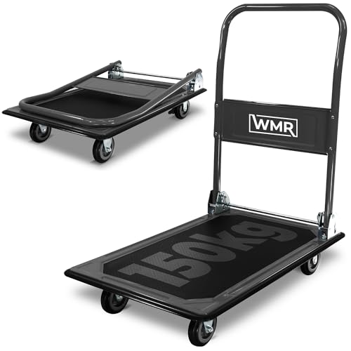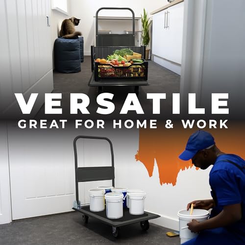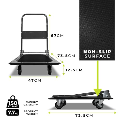 Heavy-Duty Alloy Steel Platform Trolley | Non-Slip Rubber Pad, Foldable Ergonomic Handle | 150kg Load Capacity | Manoeuvrable, Puncture-Proof Wheels | Durable Cart for Warehouse, Industrial Use