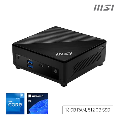 MSI Cubi 5 12M Intel Core i7 1255U Desktop PC, NUC, SFF, Mini Computer, HTPC, (16GB RAM, 512GB SSD, Windows 11 PRO), IRIS XE Graphics/ThunderBolt 4/Type C/HDMI/DisplayPort/Dual LAN/WiFi 6E/BT 5.3/VESA