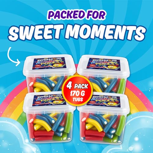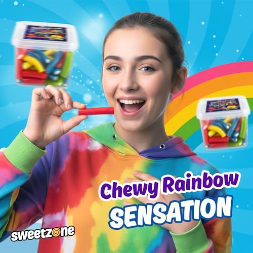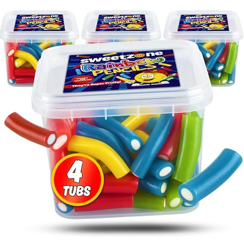 Sweetzone Rainbow Pencils - 170g Tub Pack of 4 Chewy Fruit Jellies - Experience the Irresistible Old Fashion Gummy Sweet Fruity Chews Delight - Perfect for kids and Adults