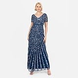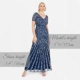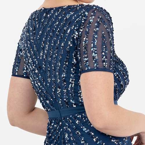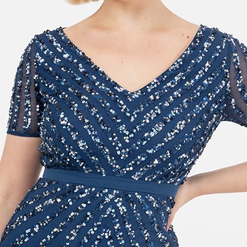 Maya Deluxe Womens Maxi Ladies Embellished Sequin Long Short Sleeve V Neck High Empire Waist Cut Shiny Prom Wedding Bridesmaid Dress French Navy Size 10