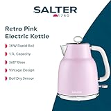 Salter Retro Kettle 1.7L Rapid Boil 360 Base Auto Shut-Off Cordless Vintage Pink