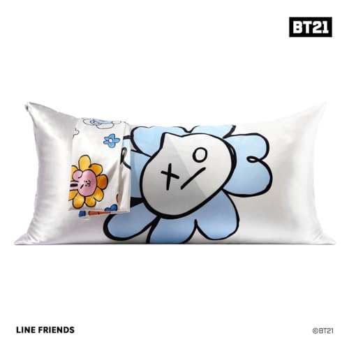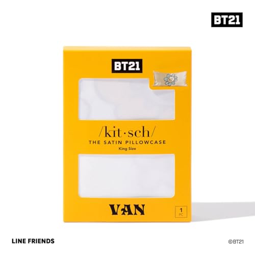 Kitsch x BT21 Satin Pillowcase with Zipper for Hair and Skin, Softer Than Silk Pillow Cases King, Cooling Pillow Covers, Machine Washable, Wrinkle-Free, Smooth Satin Pillow Cases King Size 19x36, Van