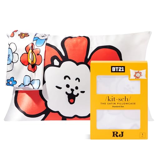 Kitsch x BT21 Satin Pillowcase with Zipper for Hair & Skin, Softer Than Silk Pillow Cases, Queen Pillow Covers, Machine Washable, Wrinkle-Free, Cooling Satin Pillow Cases Standard Size 19"x26" (Tata)