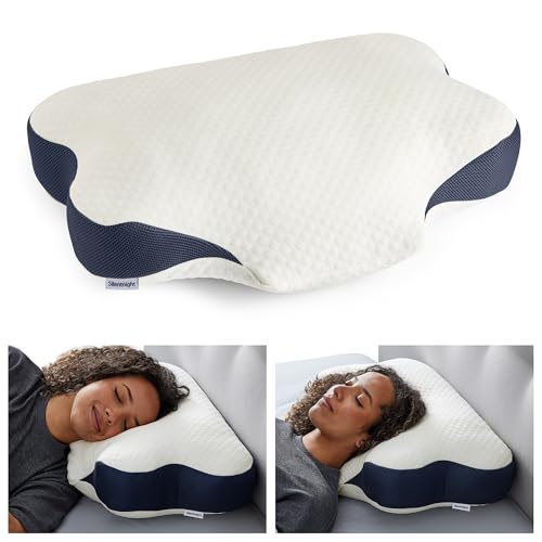 Silentnight Sleep Therapy Neck Pillow - Orthopaedic Support Pillow for Shoulder and Neck Pain Relief for Back Front Side Sleepers with Memory Foam Base, Air Mesh Sides and Adjustable Fill
