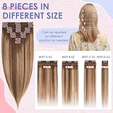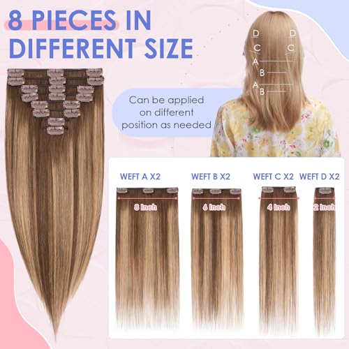 Elailite Human Hair Extensions Clip in Real Hair - 8 Pieces Thin Weft Full Head Remy Hair Straight - #Ombre 4/4P27 Midium Brown/Midium Brown Mix Dark Blonde - 12 Inch (55 g)