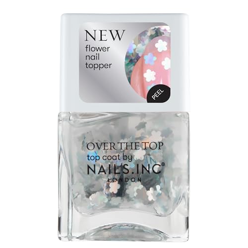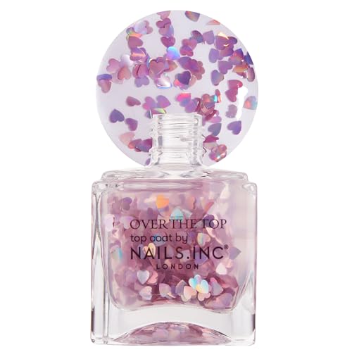 Nails Inc Over The Top, Romancing In Regents Park, Pink Heart, Confetti, Top Coat, Glossy, No Chip, Long Lasting, Quick Dry, Air Dry, Professional Manicures & Pedicures, Nail Polish, 14 ML