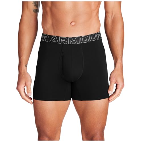 Under Armour Men's 3-Pack Performance Cotton Boxer Brief, 6" Inseam – Breathable, Moisture Wicking, Soft Touch, All-Day Comfort - White Trim