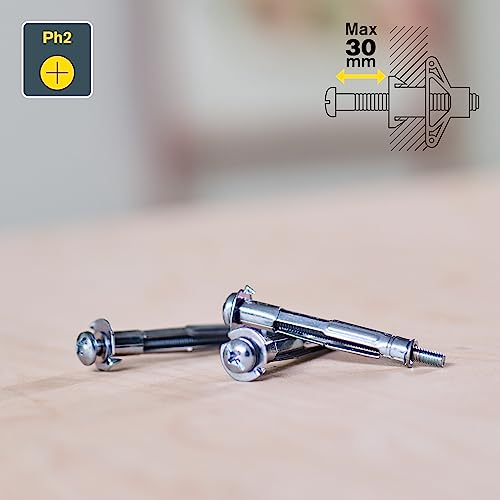 Rapid Hollow Wall Anchors, Pack of 10 Heavy Duty Metal Plasterboard Fixings for 3-20 mm Wall Thickness, 25 kg Load, Cavity Wall Fixings, Wall Plugs, Plasterboard & Chipboard Plugs (5001548)