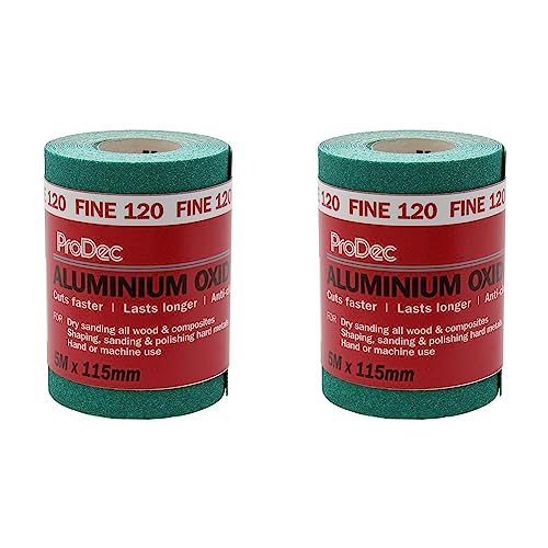ProDec 5m Roll 120 Grit Fine Grade Green Aluminium Oxide Abrasive Sanding Paper for Sanding Wood, Paint, Plaster, Filler, Metal and More, 115mm Wide Sandpaper Compatible with Machine Sanders,Pack of 2