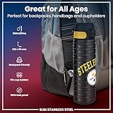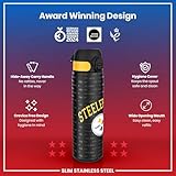 Ion8 NFL Pittsburgh Steelers Lightweight Steel Water Bottle, 600 ml/20 oz, Non-Insulated, Leak Proof, Easy to Open, Secure Lock, Dishwasher Safe, Flip Cover, Fits Cup Holders, Metal Water Bottle