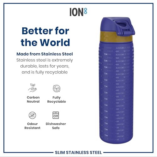 Ion8 NFL Baltimore Ravens Lightweight Steel Water Bottle, 600 ml/20 oz, Non-Insulated, Leak Proof, Easy to Open, Secure Lock, Dishwasher Safe, Flip Cover, Fits Cup Holders, Metal Water Bottle