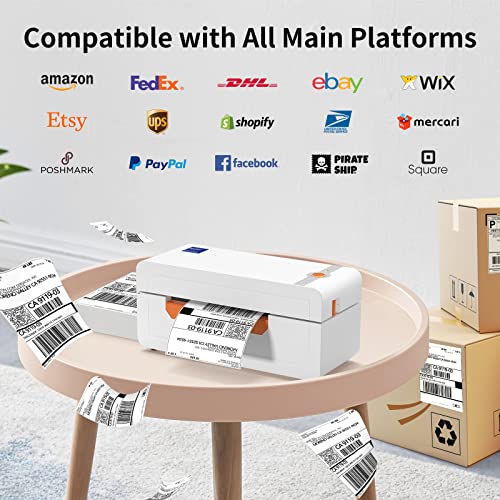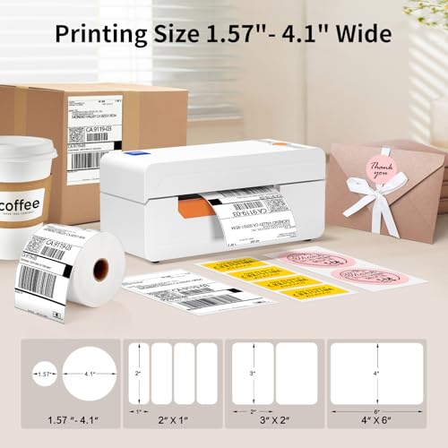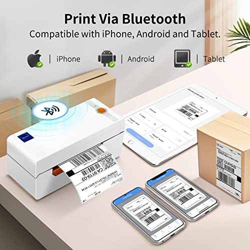 JADENS Bluetooth Thermal Label Printer, 4x6 Shipping Label Printer for Shipping Packages 203DPI, 1.57"-4.1" Printing Size Compatible with Hermes, Royal Mail, Amazon, Shopify