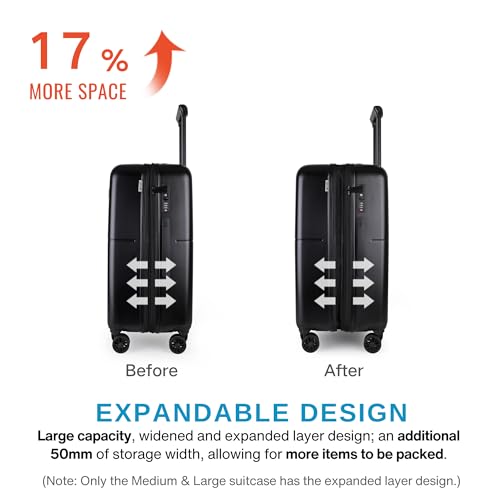 JLY Expandable Medium Hard Shell Suitcase with TSA Lock & Spinner Wheels in Black Black Medium